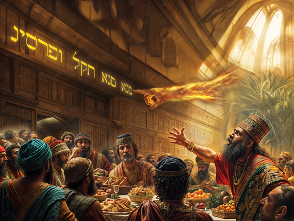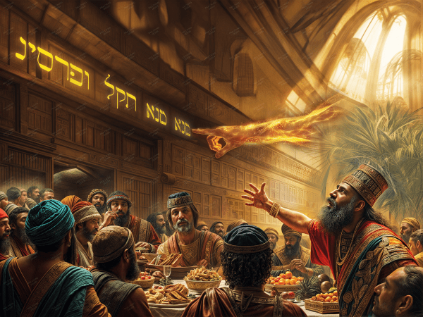 In the midst of the celebration, a mysterious hand appears and writes on the wall: “Mene, Mene, Tekel, Parsin.” The room falls into terrified silence. No one can interpret the words—until Daniel, the prophet of God, is summoned.