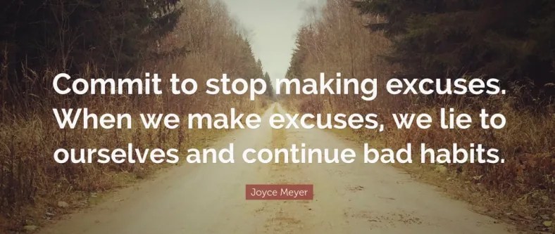 The excuses may still come knocking, but you don’t have to answer. You can declare today, “No more excuses. I’m moving forward.”