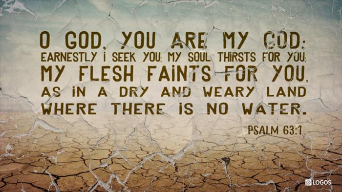 “O God, you are my God; earnestly I seek you; my soul thirsts for you, my flesh faints for you, as in a dry and weary land where there is no water” (Psalm 63:1).