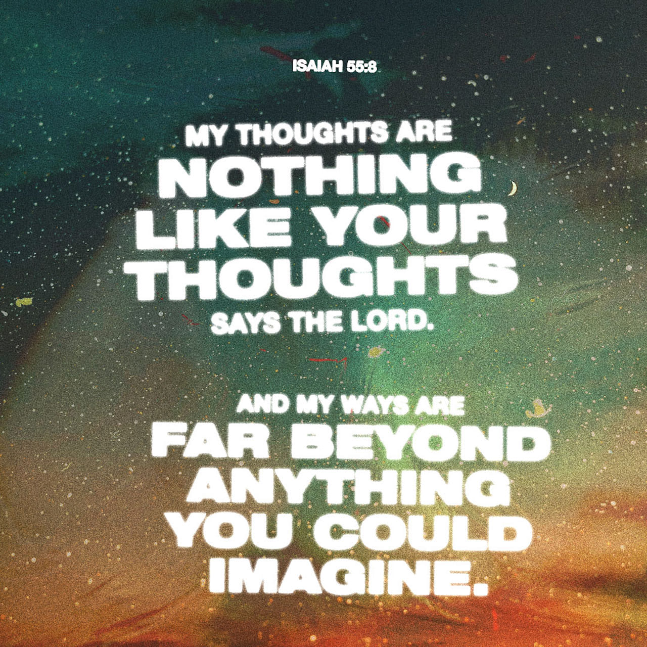 As the heavens are higher than the earth, so are my ways higher than your ways and my thoughts than your thoughts.”
