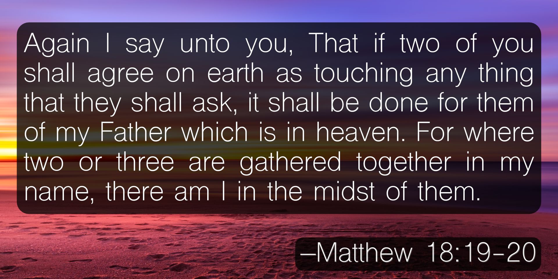 Jesus said, “If two of you on earth agree about anything they ask for, it will be done for them by my Father in heaven.” (Matthew 18:19, NIV)